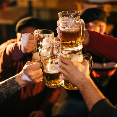 Auch unser gesamter Hof ist in ein winterliches Zauberland verwandelt – Der Glühweingarten. Mit Hackschnitzeln, offenem Lagerfeuer, Weihnachtsbäumen und einem funkelnden Lichtermeer in den alten Bäumen kommt schnell das perfekte Hütten-Feeling auf. Für gute Unterhaltung und echte Team-Vibes sorgt unser TeamSpiele-Parcours mit 5 Stationen, und unsere Bergkirchweih-Schänke hat sich in eine Glühwein-Schänke verwandelt.