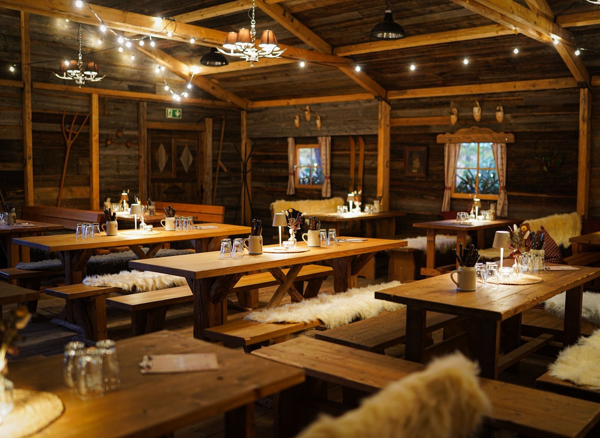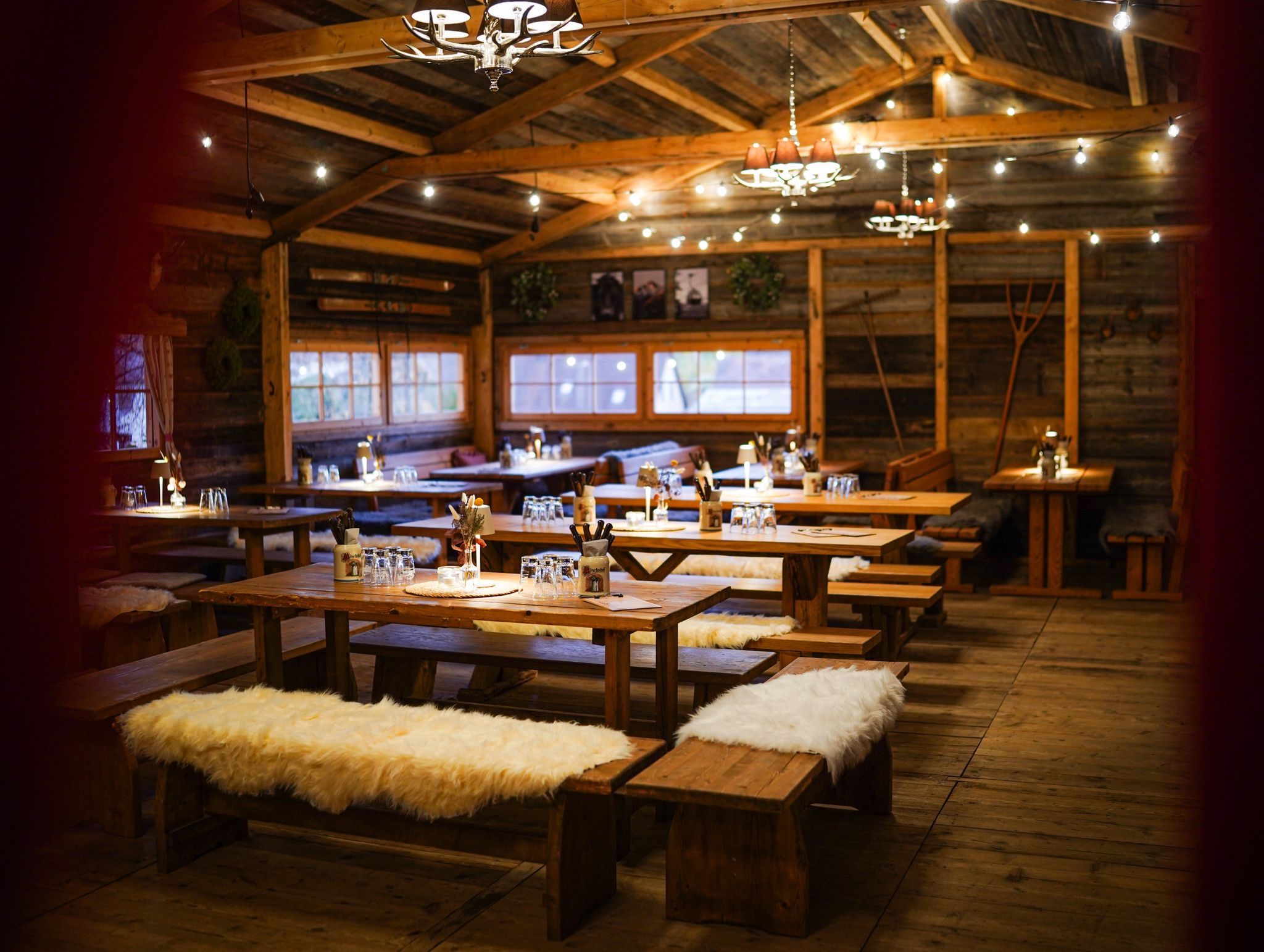 Aus altem Fichtenholz gefertigt wurde die Almhütte in Österreich abgebaut, hier nach Erlangen transportiert und bei uns im Biergarten wieder aufgebaut. Ausgestattet mit gemütlichen Sitzgruppen und liebevoller Hütten-Deko fühlt man sich darin direkt wie in einer Berghütte mitten in den Alpen!